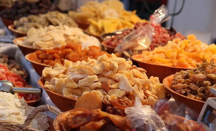 將果塊撈出,瀝干糖液,擺放在烘盤上,送入烘干室,在60~66℃的溫度下干燥至不粘手為度,大約需要24h。